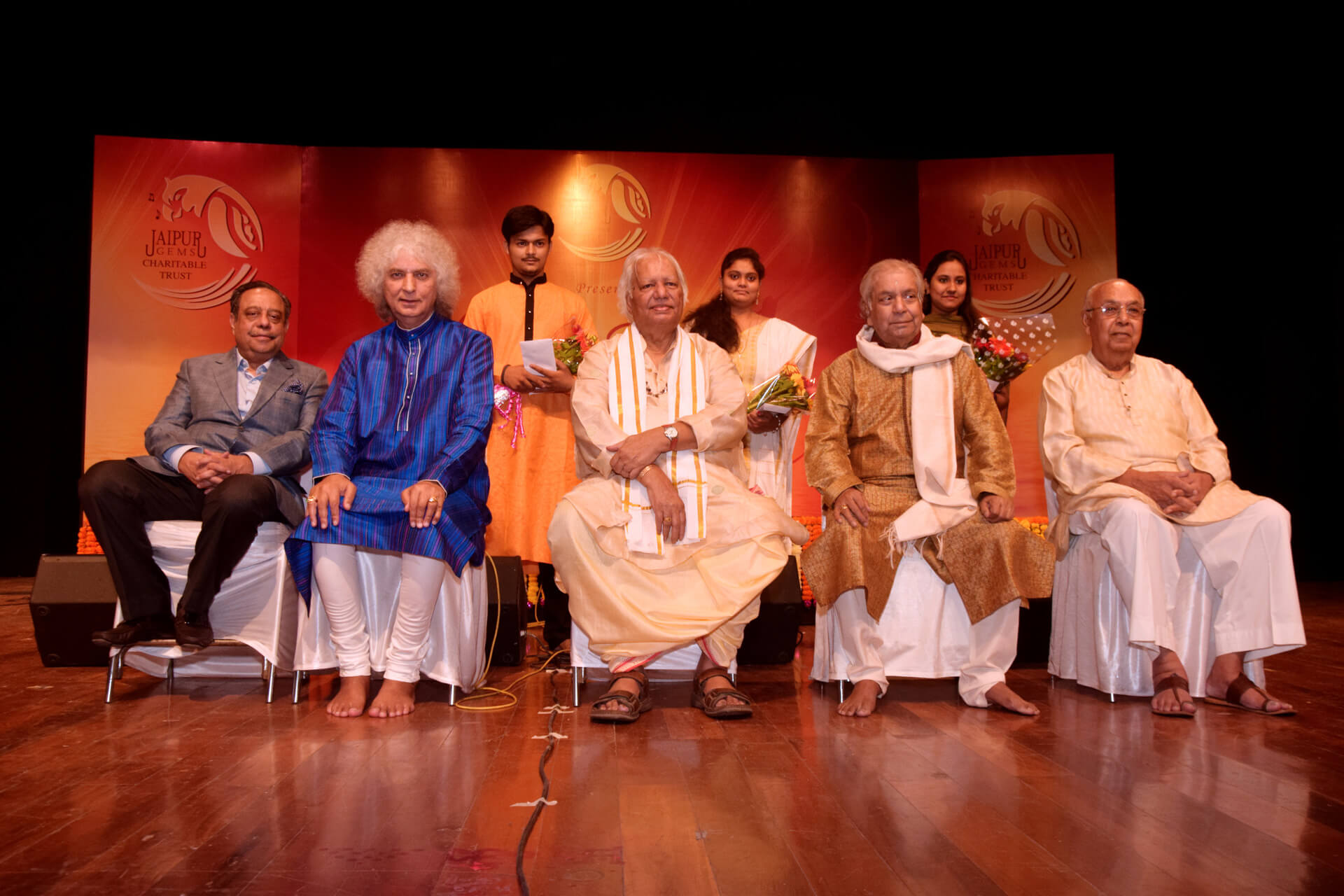 Later, on 11th January 2020, in the same UGAM event, I was honoured to receive the Jaipur Gems Scholarship from the hands of Pt Shivkumar Sharma and Ustad Zakir Hussain as an encouragement for continuing my vocal music training from my guru Pandit Ram Narayan ji.